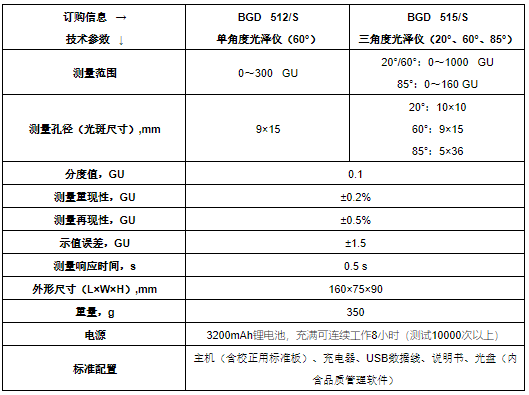◆ 对于BGD 515/S,三种测量角度(2 0°6 0°8 5°)可以同时测量;